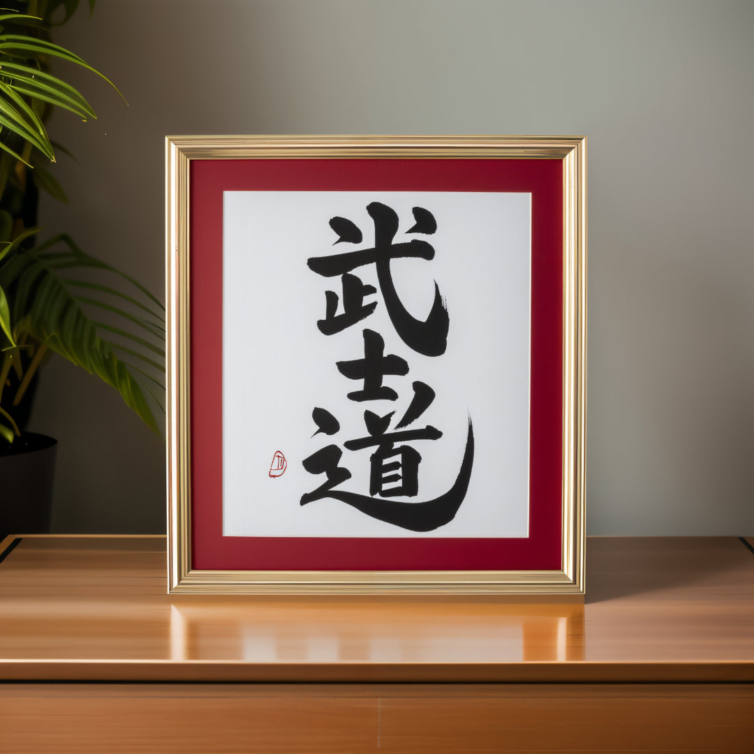 This framed calligraphy artwork showcases the phrase 武士道 (Bushidō), the spirit of the Samurai. It represents the timeless values of loyalty, integrity, courage, and honor. More than a code of conduct, Bushidō is a way of life that inspires dignity, purpose, and respect.
