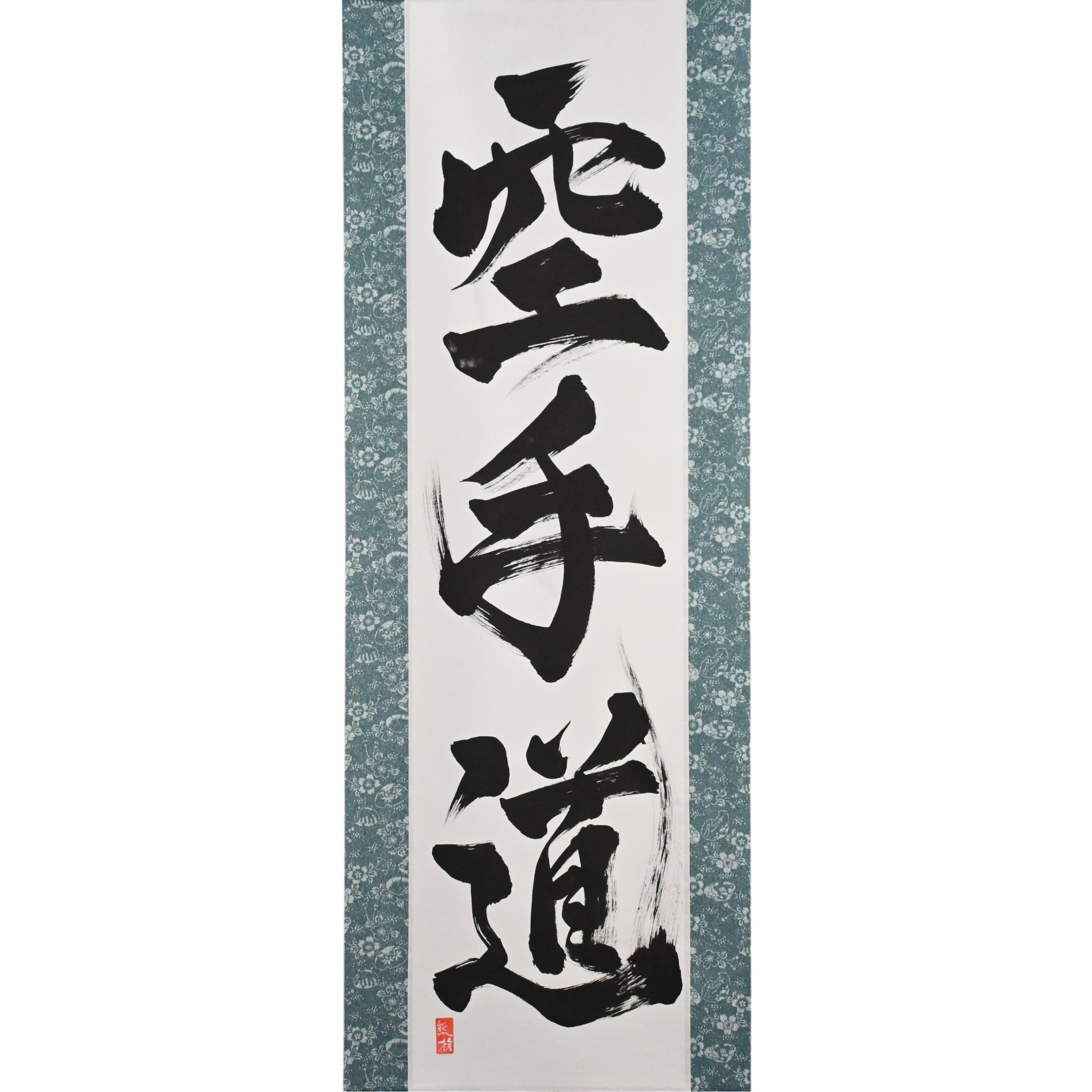 This calligraphy scroll features the powerful phrase 空手道 (Karate-do) — not merely a martial art, but a lifelong journey of discipline, respect, and inner strength.