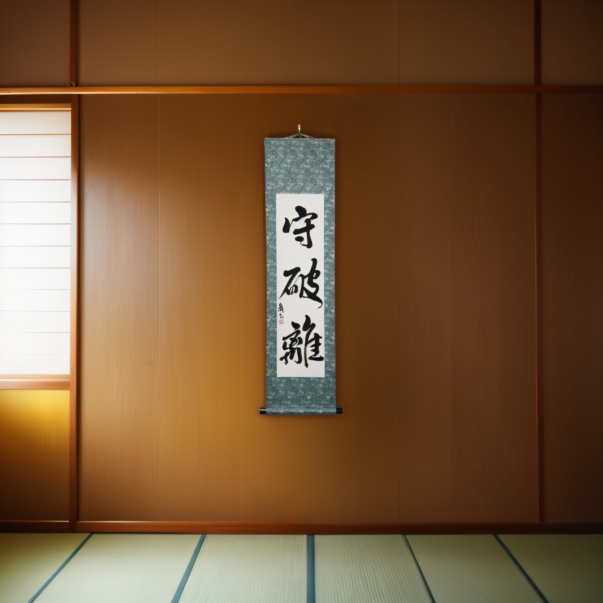 This Japanese calligraphy scroll features the timeless phrase 守破離 (Shuhari) — a profound teaching that captures the path of growth and mastery in all martial arts.