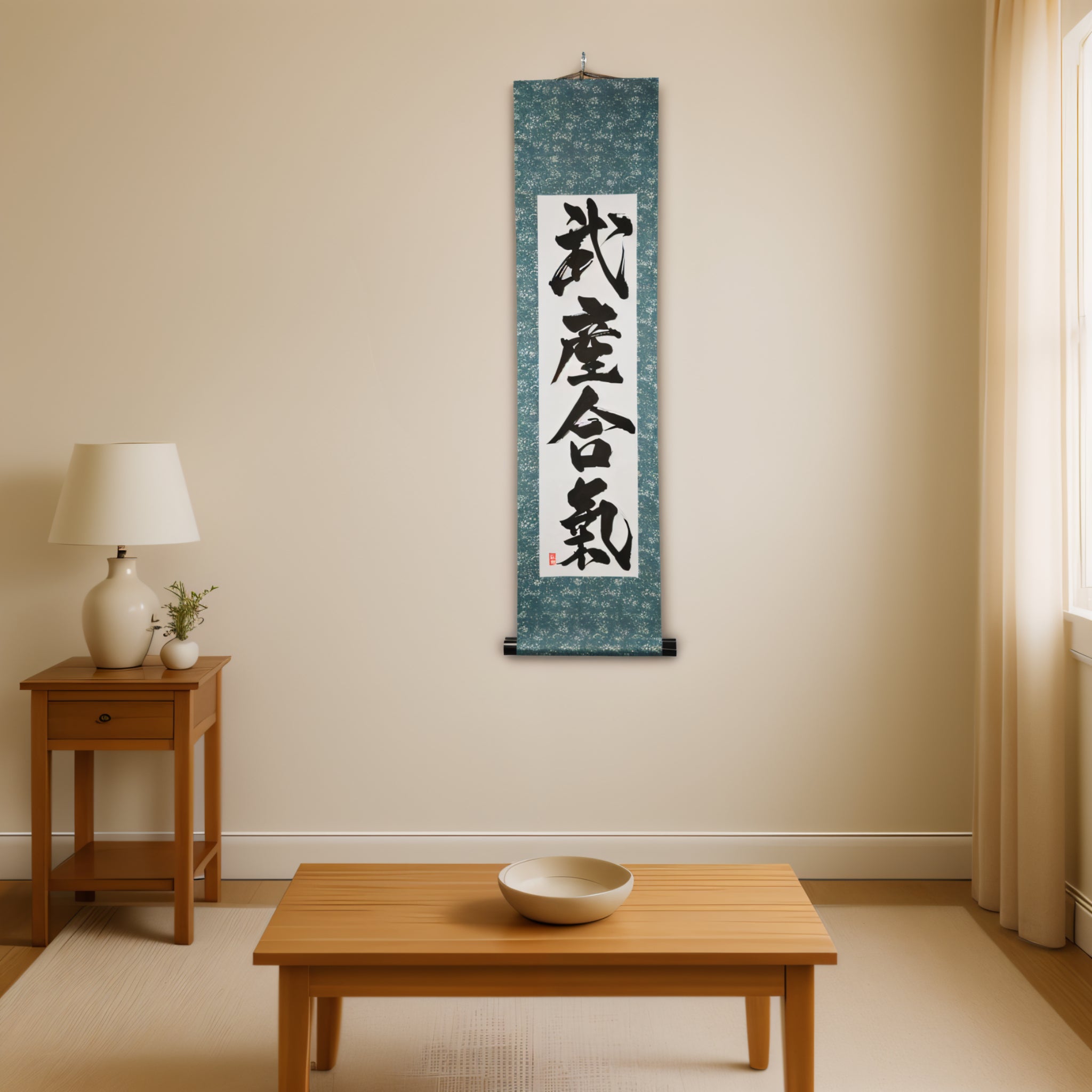 This scroll serves as a spiritual anchor and inspiration — a reminder that the ultimate path of Aikido lies not only in mastery of form, but in the birth of harmony through martial spirit.